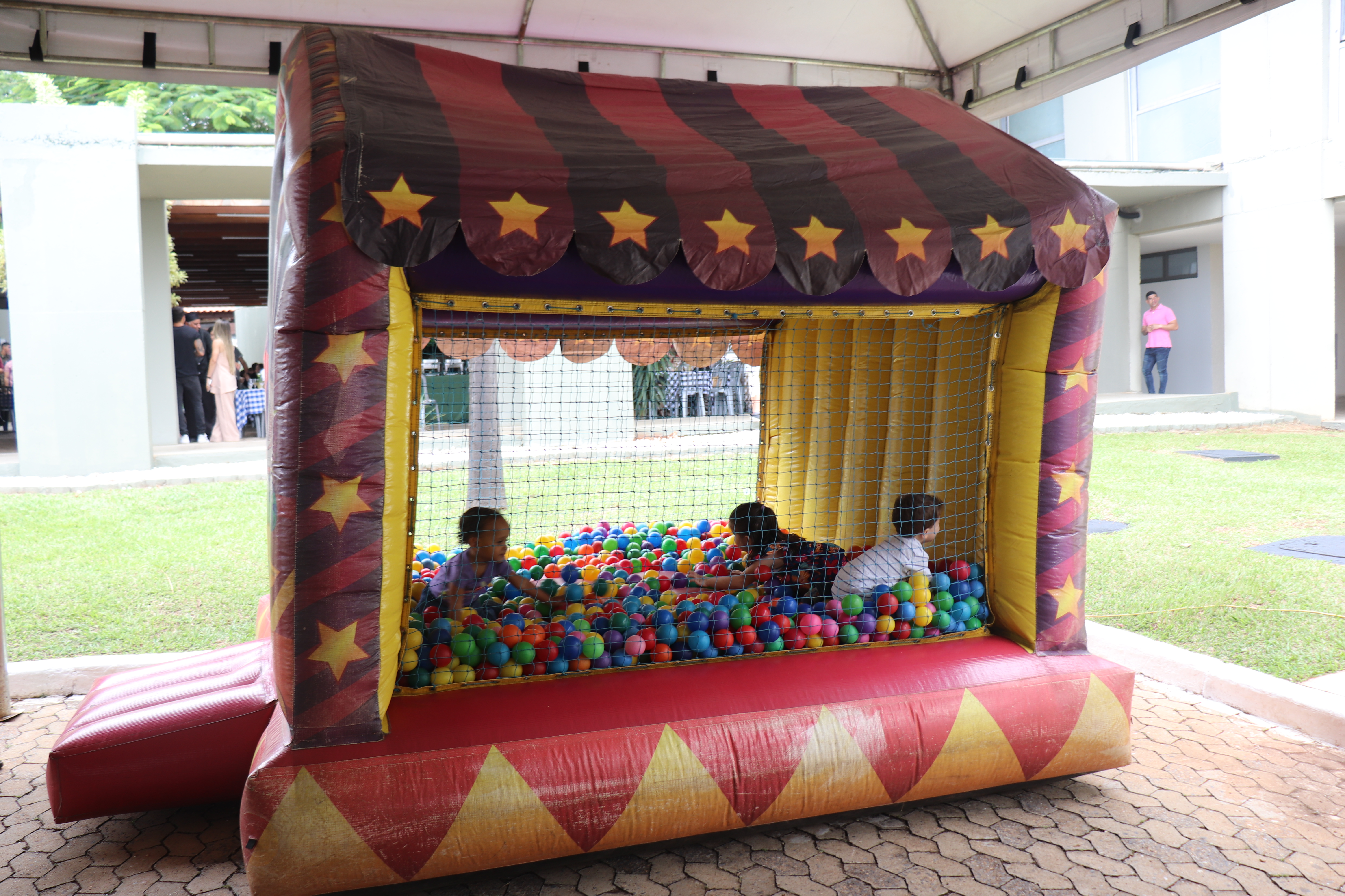 Já imaginou poder pular e mergulhar em um circo cheio de bolinhas? Com nossa Piscina de Bolinhas Inflável é possível! O design de circo feito com impressão digital deixa a criançada animada para experimentar a diversão de um mundo colorido com 2000 bolinhas!
